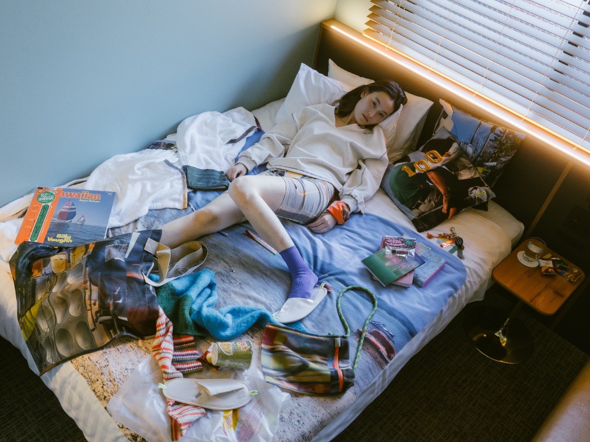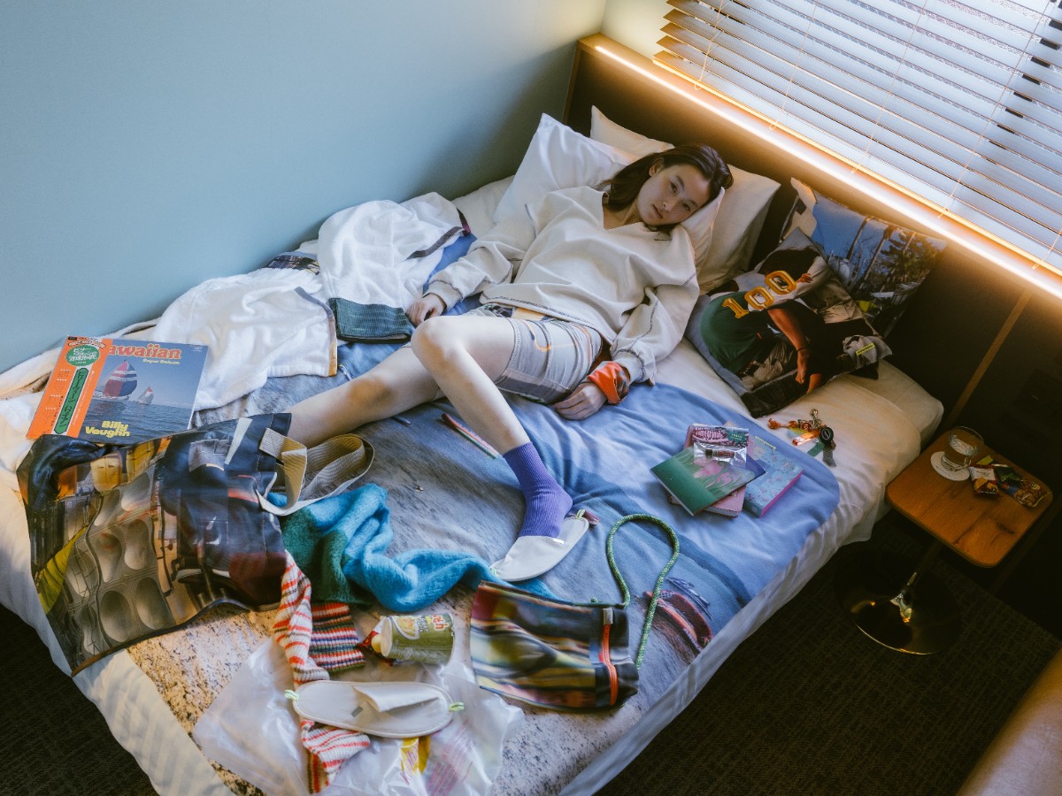 寒い季節がどうしても苦手で、冬になるといつも“どこかへ行きたい”気分になります。この部屋では、そんな時でもバケーションに来たような気持ちで過ごしてほしいです。日常の何気ない瞬間をグラフィックとして切り取るのは、私たちのブランドの象徴でもあります。