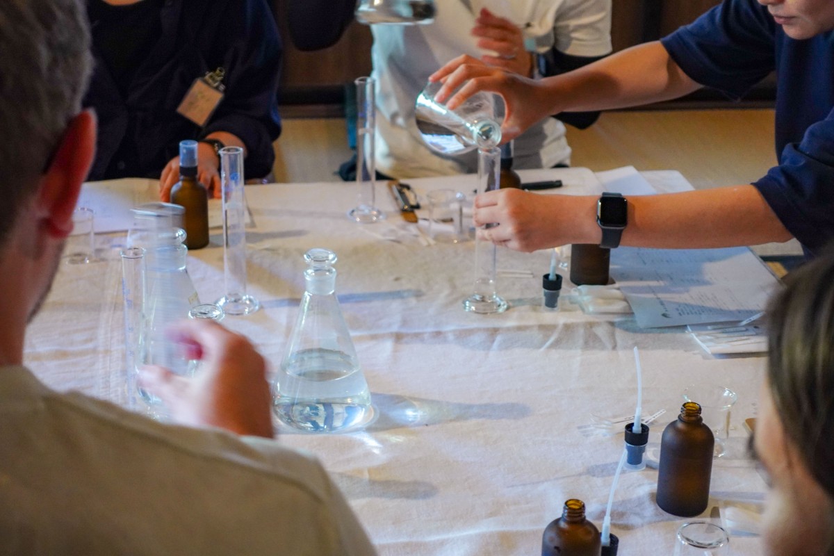 ワークショップで蒸留した香りをREBUILDSAUNAの室内で楽しめます。