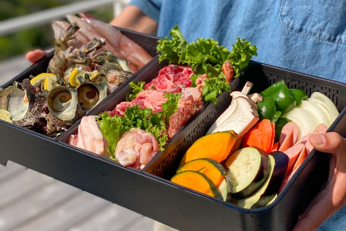 2025年より高級グランピングがスタート。宗像牛や新鮮な海の幸を活かした、バリエーション豊かなBBQメニューを用意しています。カフェ併設のハウスで、シーンに合わせた活気ある時間をお過ごしください。