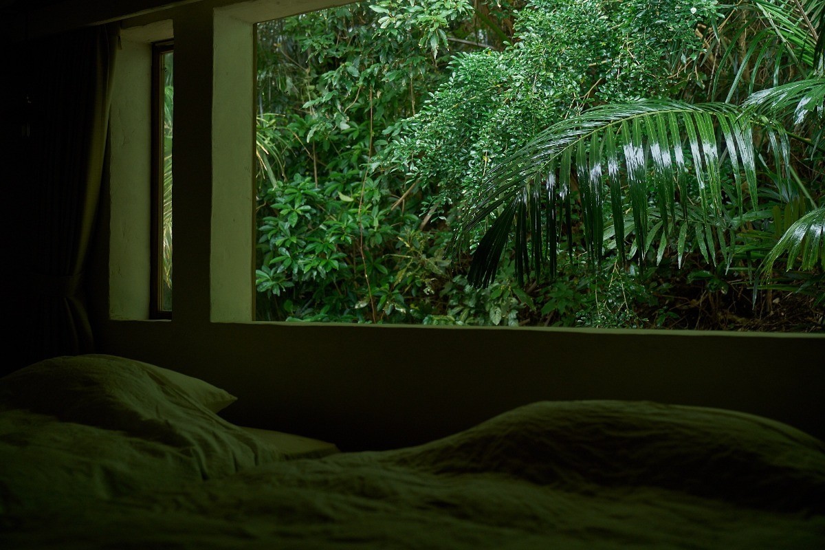 ▲芭蕉の家の周りは森に囲まれ、鳥や蝶、虫など様々な生物が共存しています。それらが部屋に遊びに来る事もしばしございますのでご了承下さい。また周囲に民家が少ないため夜は静かで暗くなります。暮らしに必要なものは一通り揃っています。