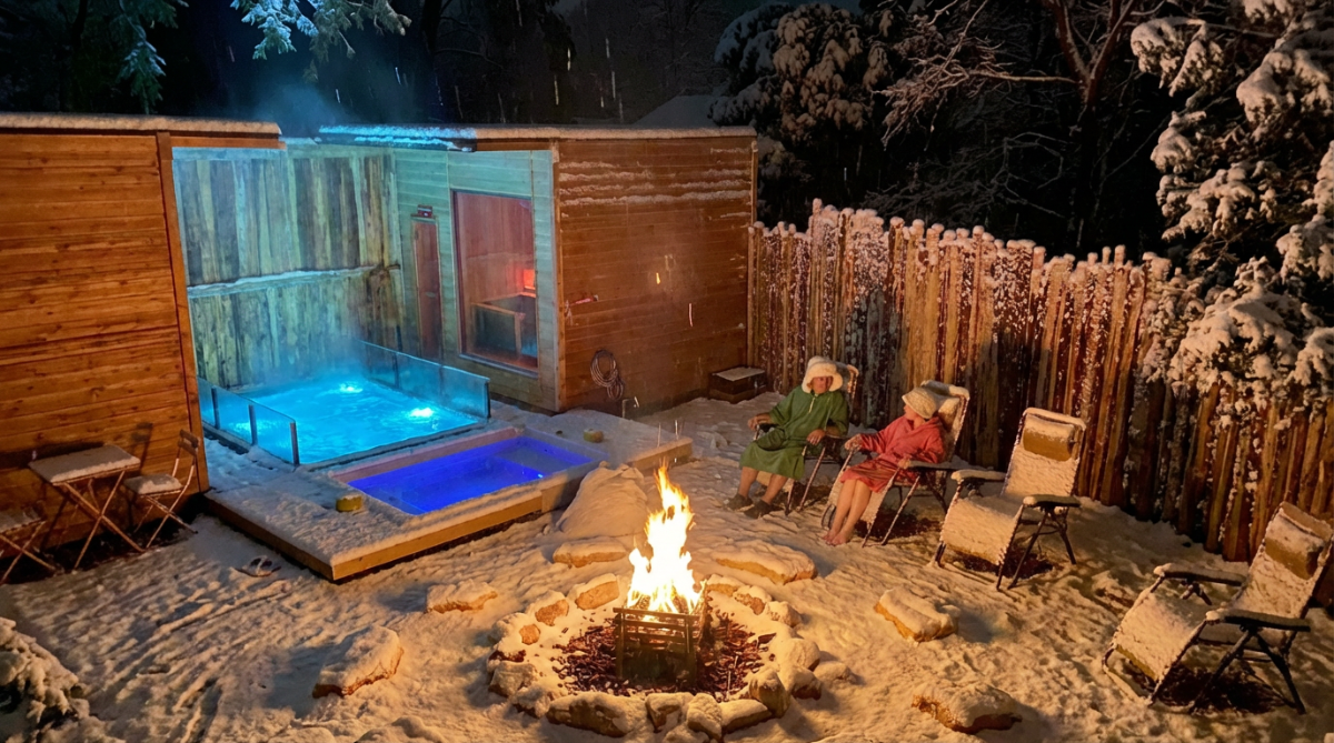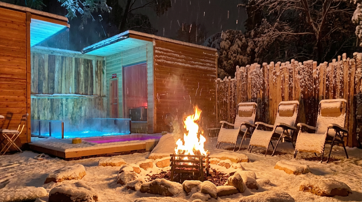 ここでは、外の世界から少し距離をおいて、自分を整えることができます。火を囲み、湯に癒され、深く眠る。