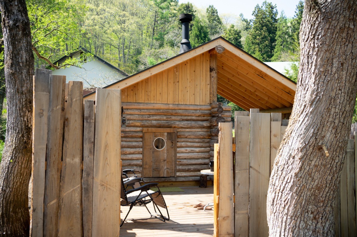 サウナの目の前に外気浴スペースが広がっています。柵に囲まれたプライベート空間の中で森林外気浴をお楽しみ下さい。