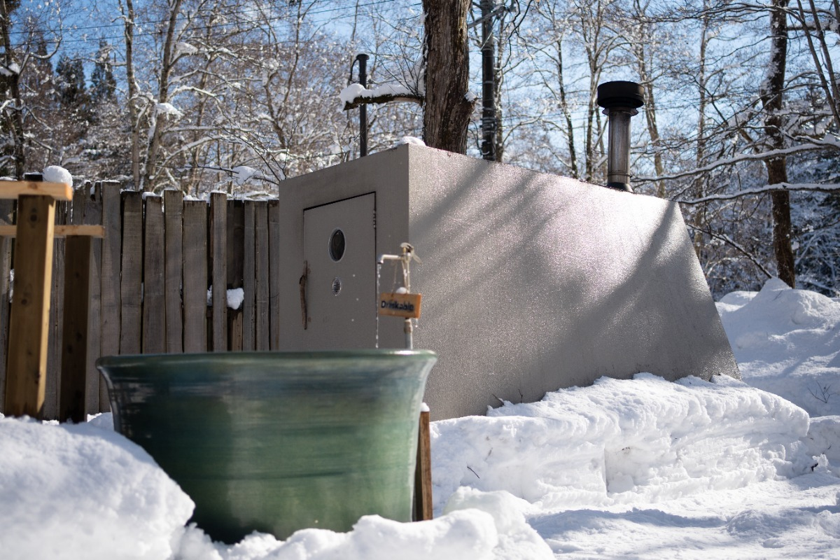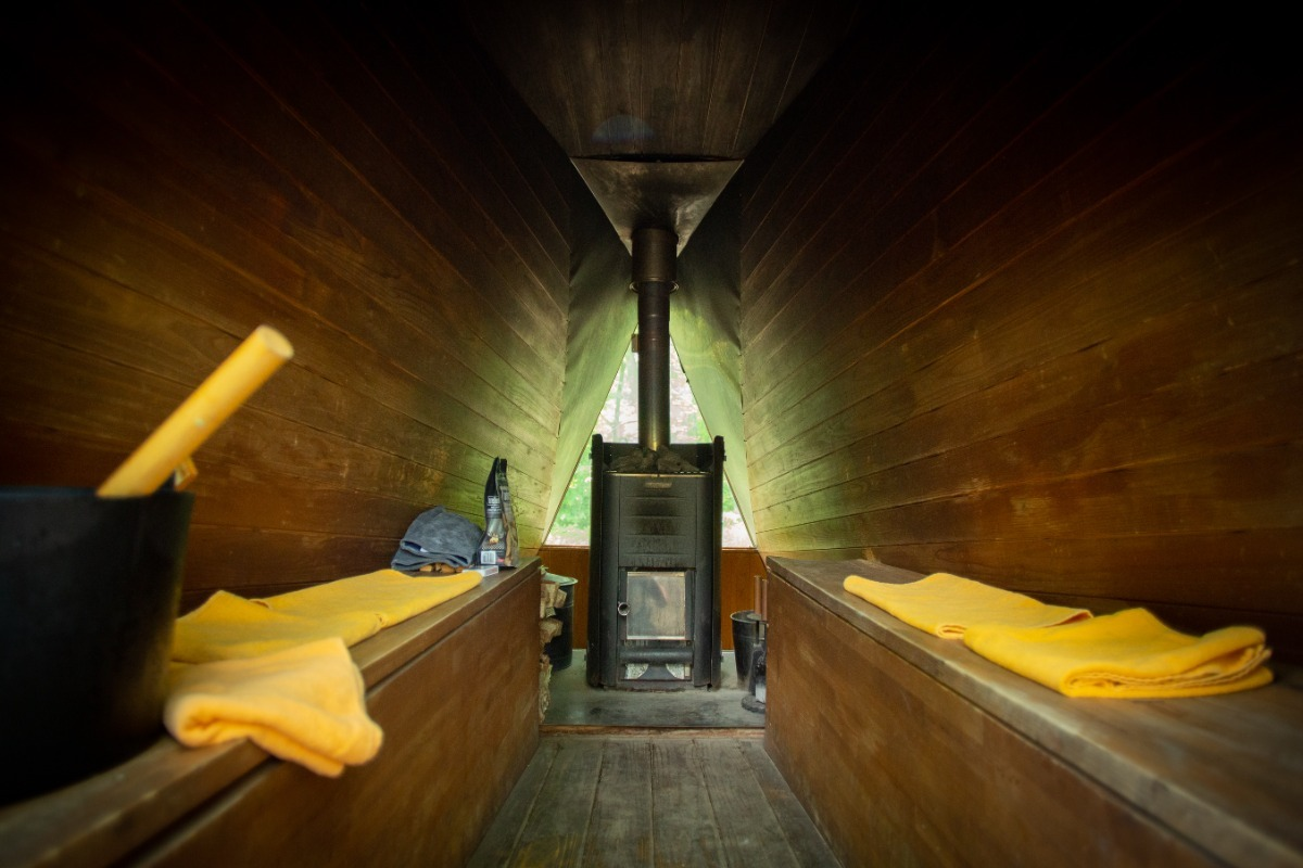 Built by staff in 2020, this second sauna (Kaksi = "two" in Finnish) is a rare two-story structure.