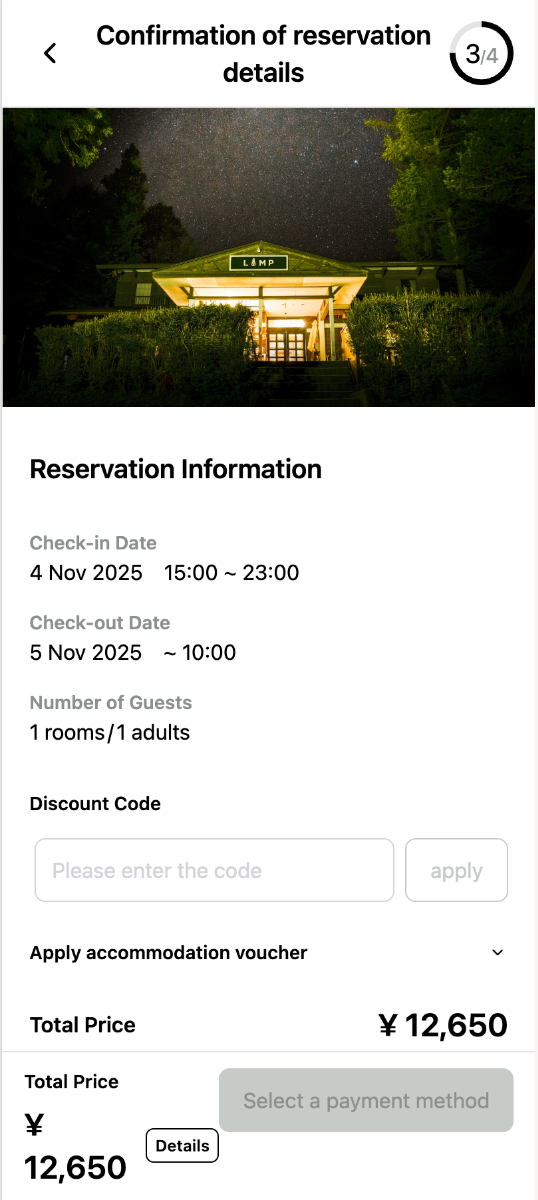 After confirming your selection, input guest information to complete the booking.