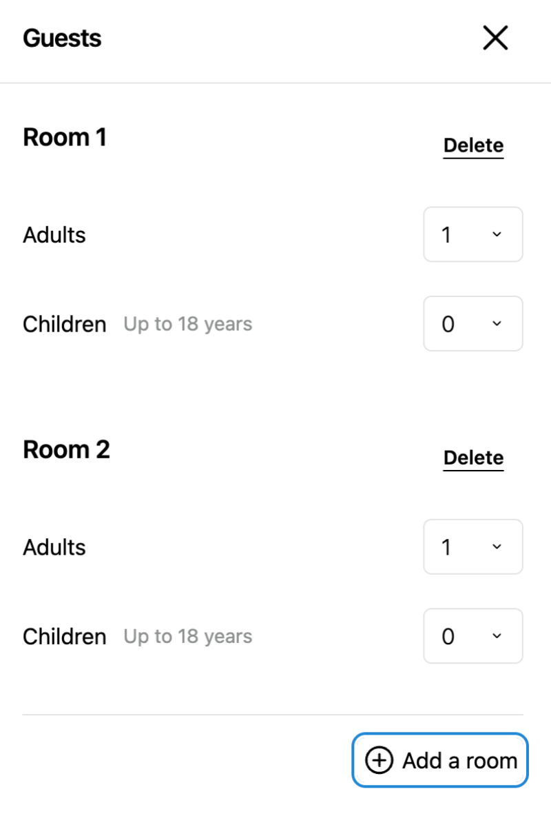 A. Yes. On the guest number selection screen, click "➕ Add Room" to select two or more rooms.