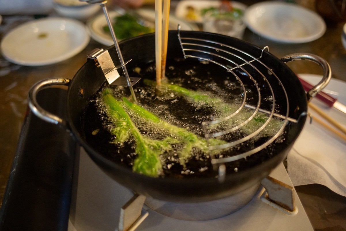 10~15種ほどの山菜を”採れたて”で”揚げたて”の天ぷらにしていただきます。