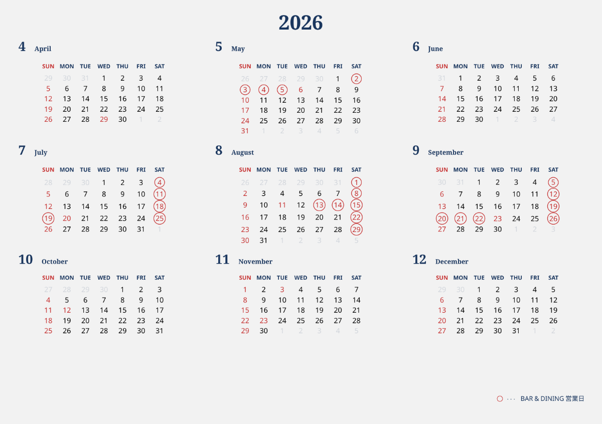 ■BAR 17:00〜21:30(L.O) ※土曜・連休時のみ営業