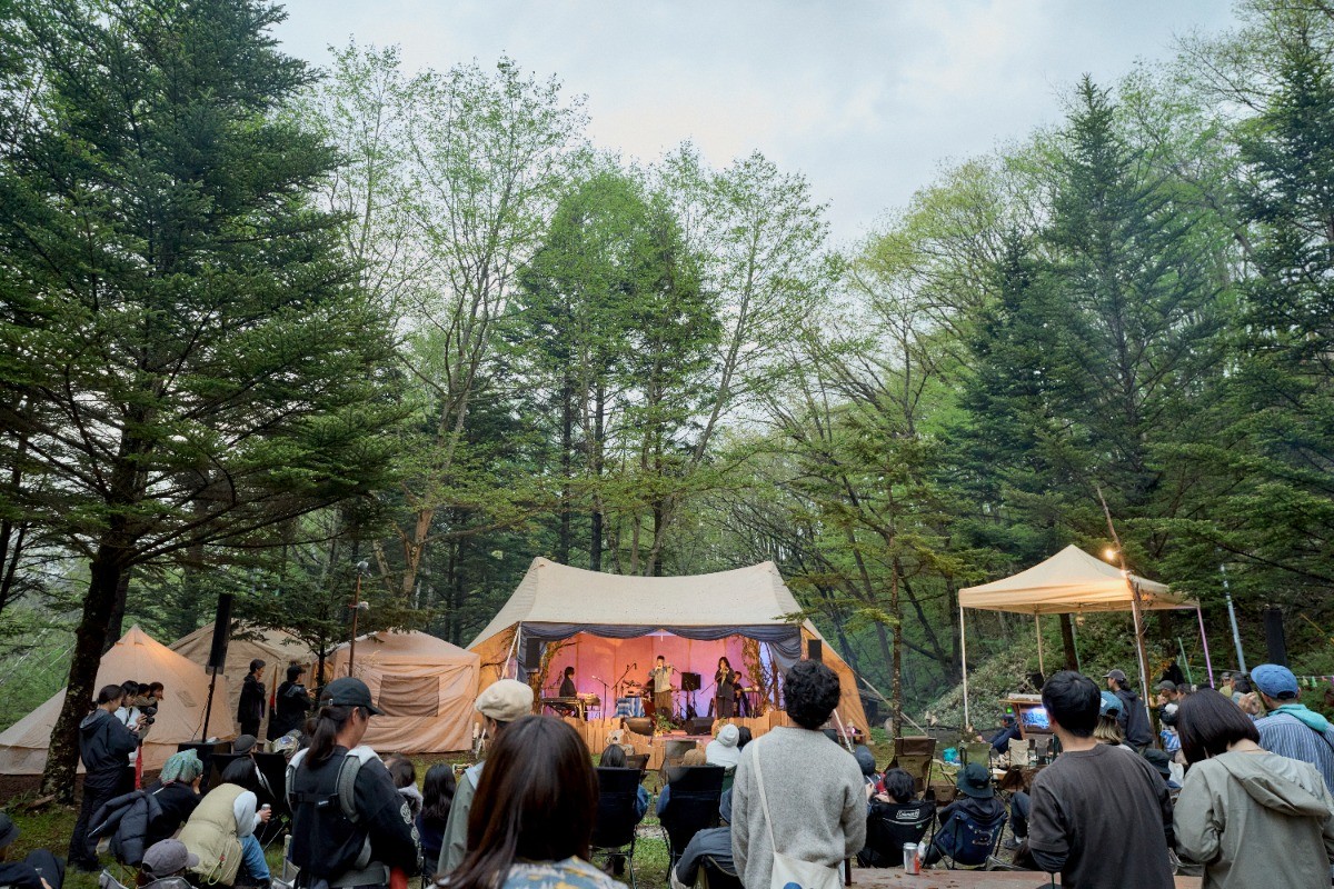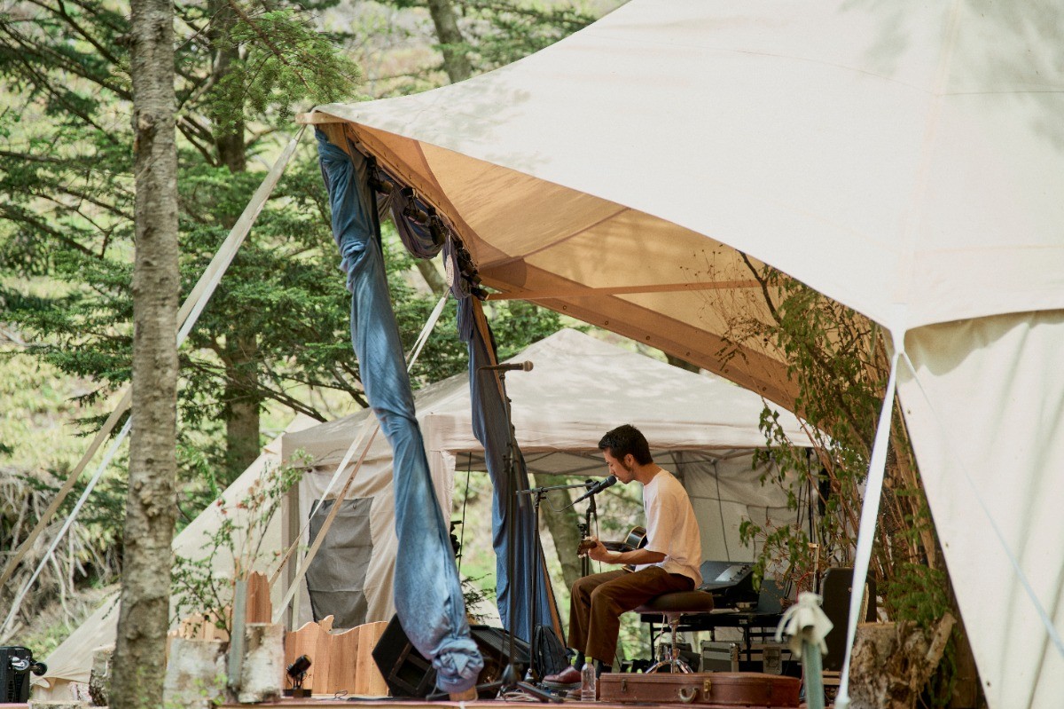 渓流のせせらぎ、野鳥の囀り、頬を撫でる柔らかい風、様々な自然環境に合わせて、アーティストが奏でる音楽に、各地でお店を営む方々が織りなす、森の中で自由な時間を過ごす2日間。