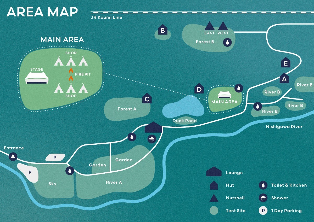 「Terrace」というキャンプサイトがメインステージです。詳しい場所については下の会場MAPをご確認ください。