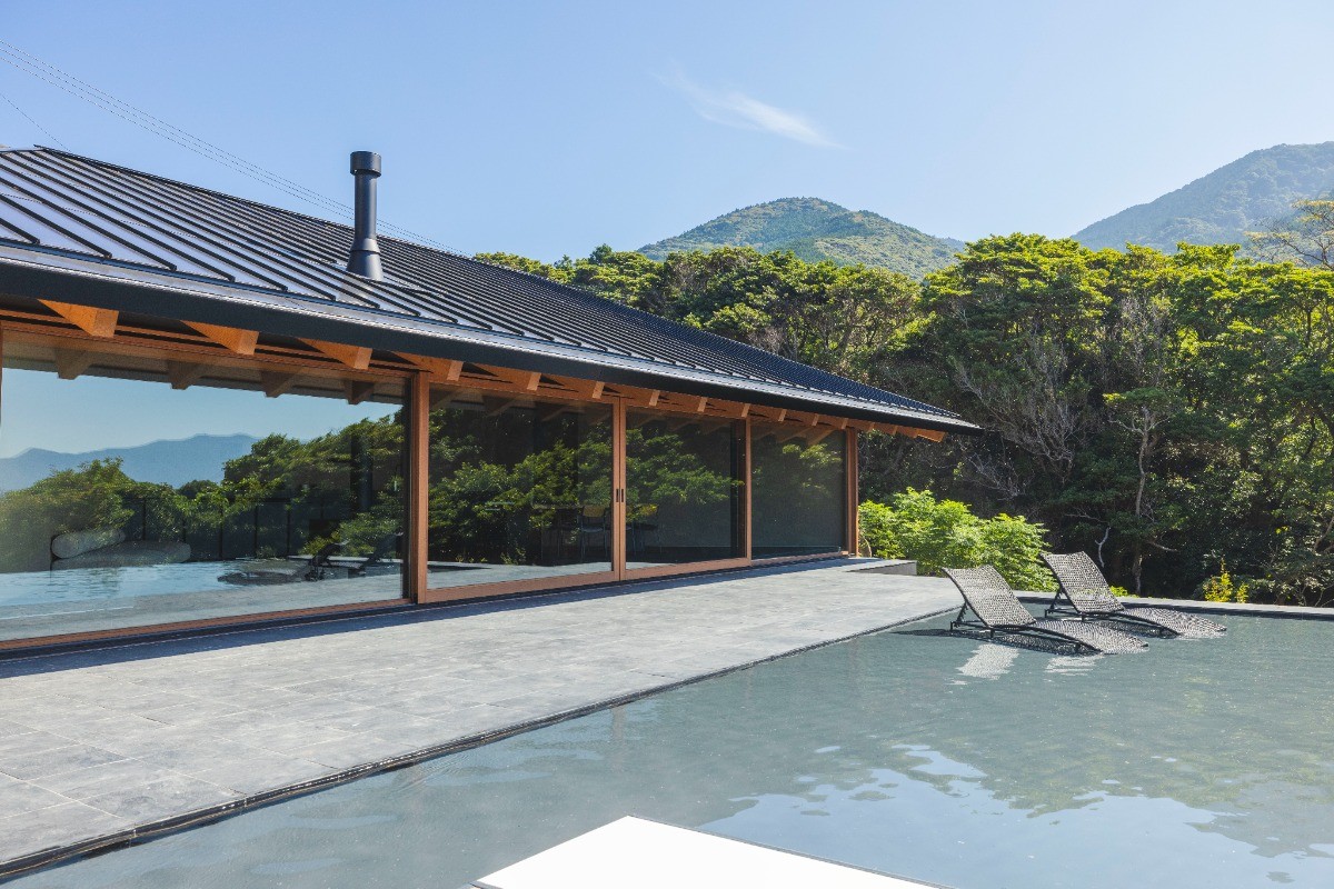 A large terrace water deck, cradled by the surrounding nature, features a tatami Zen space for meditation and relaxation.
