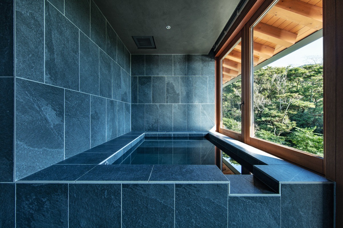 窓を開放することで半露天となり、湯に身を委ねながら、波音や鳥のさえずり、刻々と移ろう自然の気配をお楽しみいただけます。また、シャワーなどの排水熱を再活用する Heat Circulation 技術を導入し、エネルギーが“廻る”仕組みを実現。