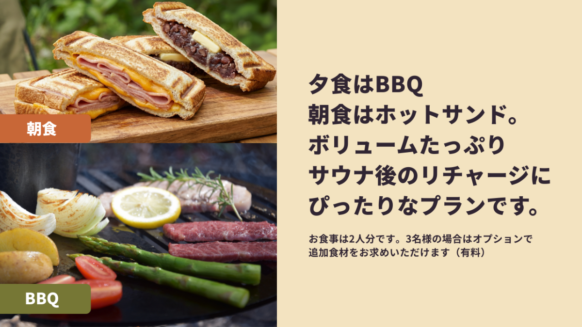お食事は各オプションごとに分かれております。ぜひご確認ください。