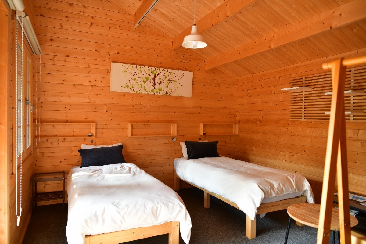 FIRESIDEのギアと楽しむ薪料理小さなベッドルームと全デッキで雨でも汚れないお部屋で、ちょっと贅沢なアウトドア体験をしませんか?サウナも水風呂も2人でちょうどのサイズ。サウナの熱は最高100℃前後です。ロウリュウで調節しながらお楽しみください。