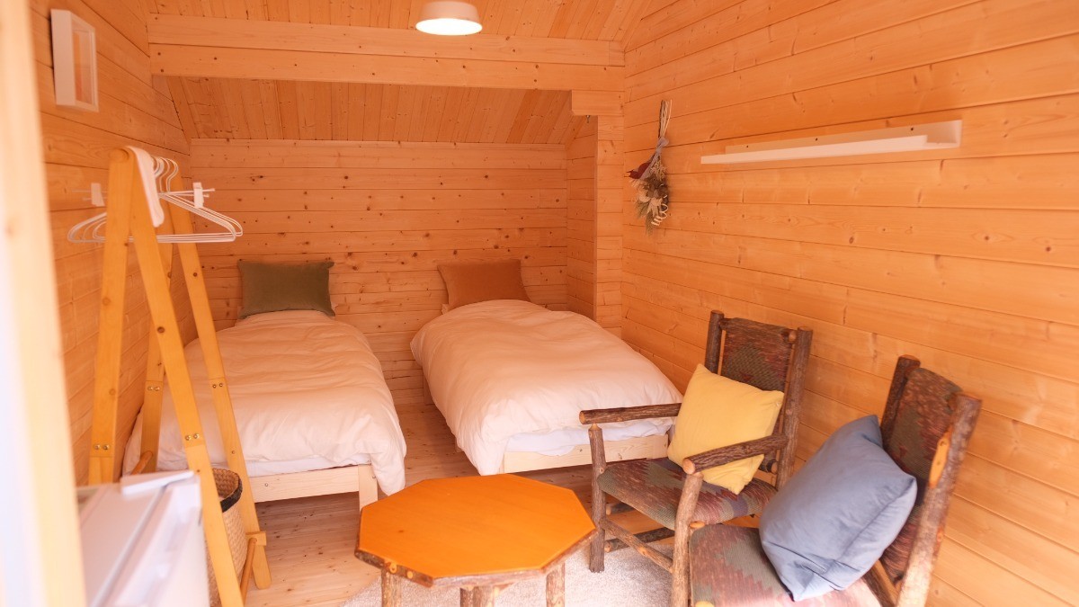 小さなベッドルームと全デッキで雨でも汚れないお部屋で、ちょっと贅沢なアウトドア体験をしませんか?