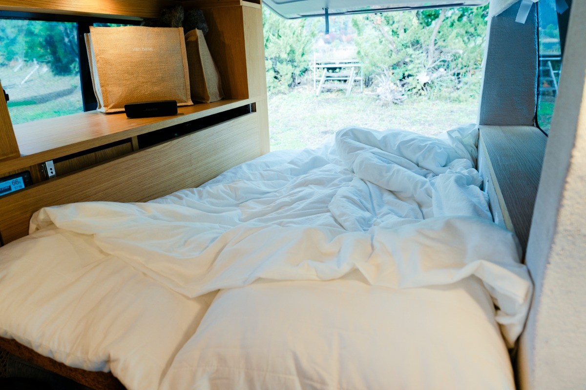 室内からキッチンを取り出し、デッキを取り出し、屋根を取り出す。Van hotelを止めた場所はすべてあなたが泊まる部屋の一部になります。まるで扉を開けた瞬間に景色の方から迎えにきたように。