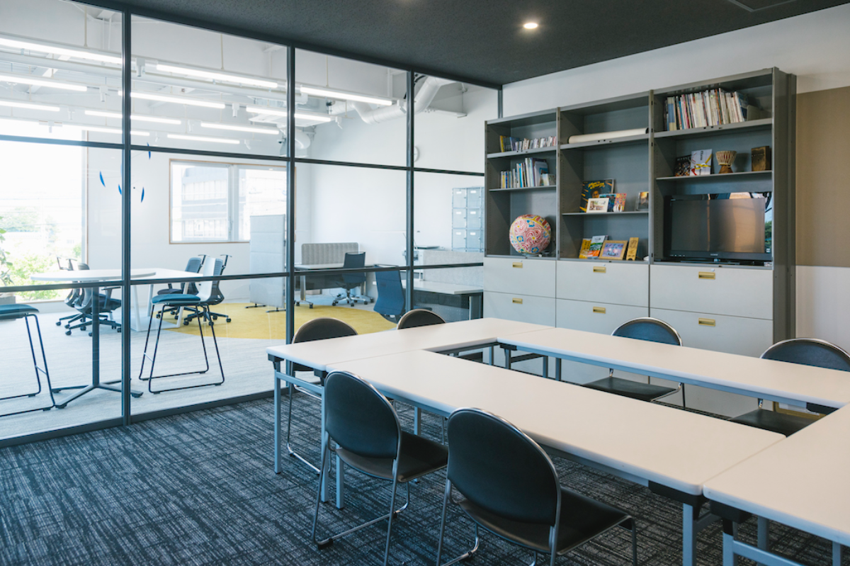 各種会合やセミナー、ワークショップなどいろんなことに使える、机と椅子を備えたミーティングスペースです。