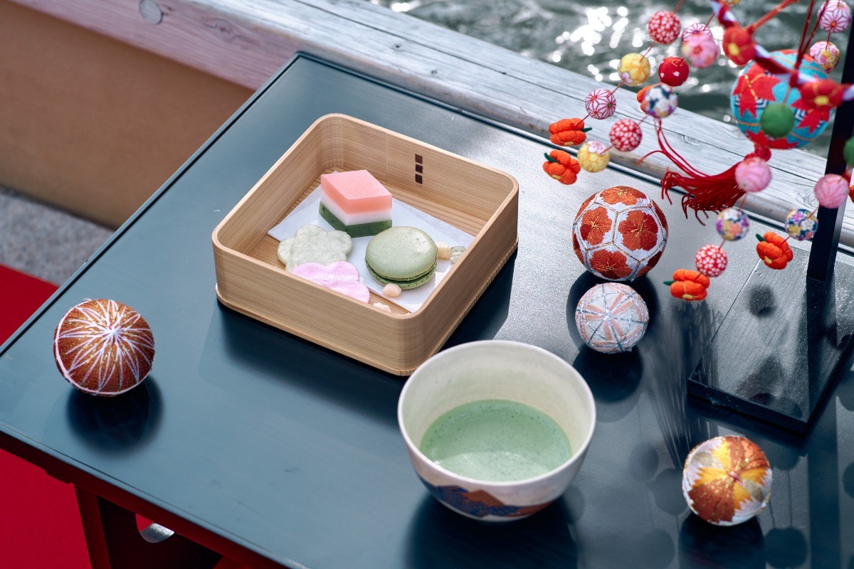抹茶とともに味わえるのは、立花家御用達の吉蔵の菱形羊羹、花せんべい、雛あられなどの甘味です。春の陽気と水面のきらめきに包まれながら、柳川ならではの川下りをゆったりお楽しみいただけます。