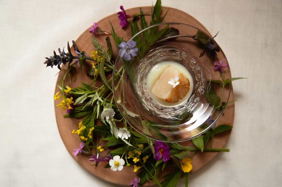「北海道のオーベルジュ」として、地域や北海道の生産者さんをつなぐ一皿を表現した“Farm to table”を実践します。近郊提携農家さん直送の新鮮なオーガニック野菜や、北海道の海と山の食材を使い、季節の巡りと共にある暮らしの豊かさと、旬のものを食べることの喜びを、料理を通してお届けしたいと願っています。