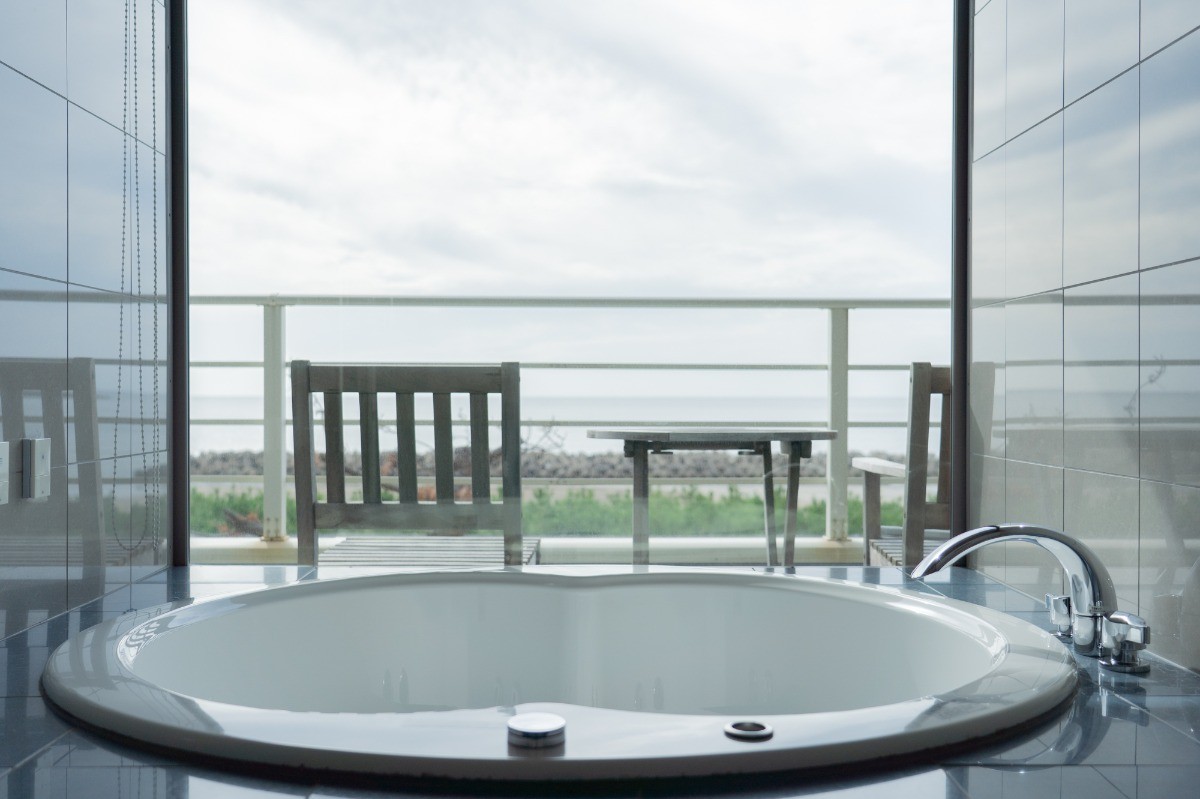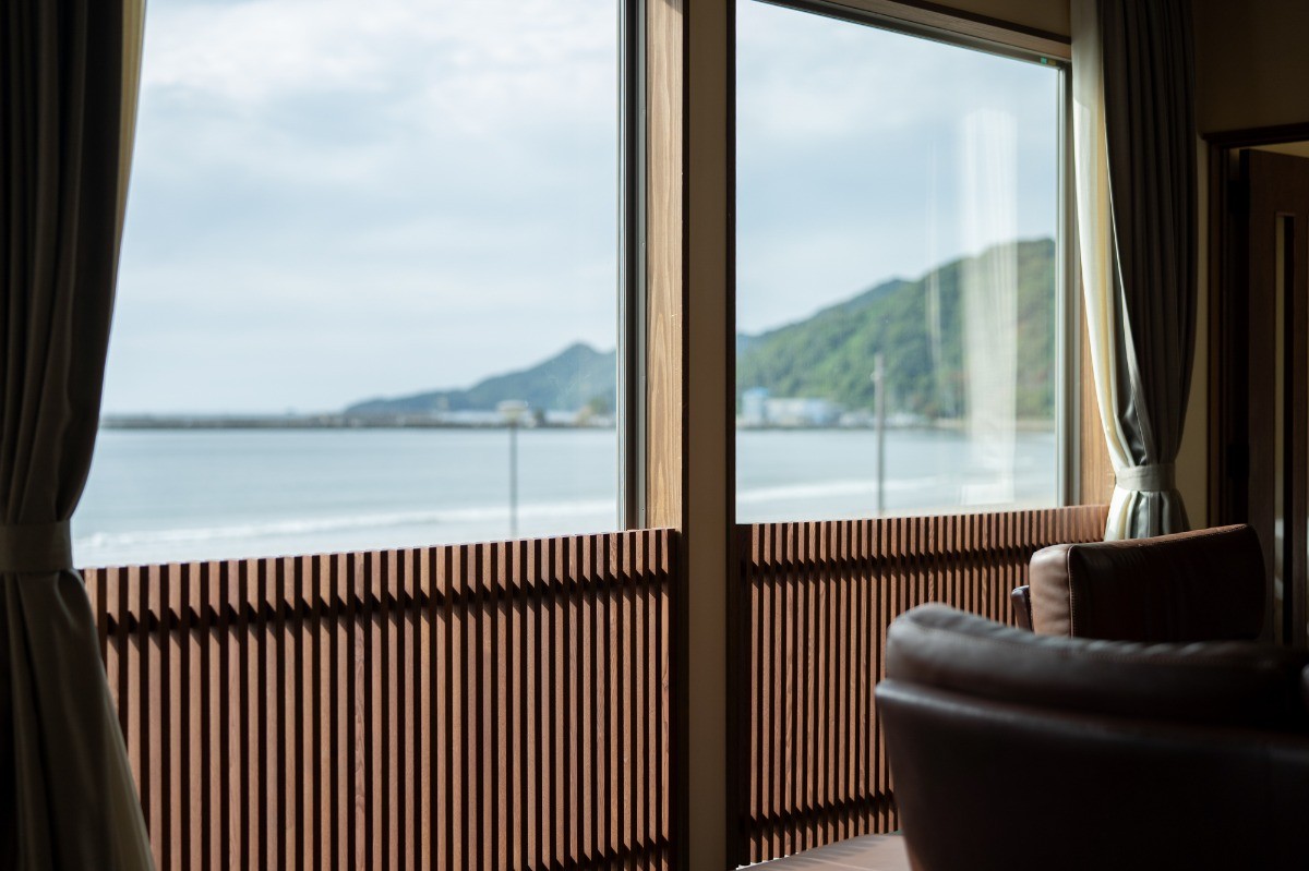 時間帯によって表情を変える海とともに、日本海に沈む夕陽を眺めながら、ゆったりとした時間が流れます。