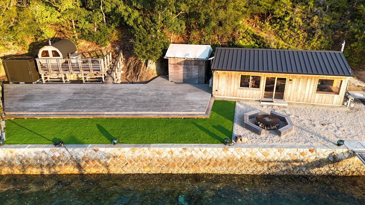 英虞湾に浮かぶ島の先に佇む、船で訪れる特別な宿です。1日1組限定で、大自然と絶景を満喫できます。かつて真珠養殖場として使われていた場所に新しい命を吹き込んだ格別の空間が生まれました。