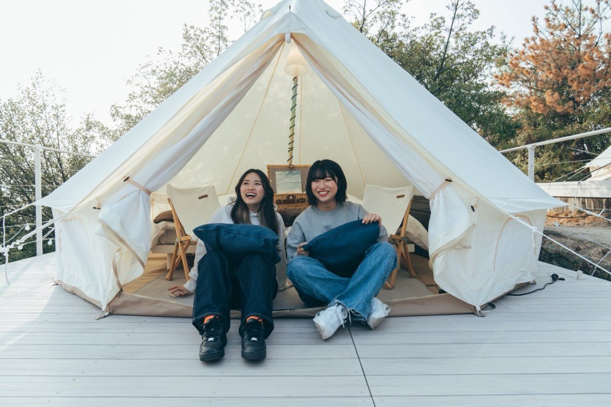 なみの音、テントに差し込む太陽のやわらかな光は、テントならでは体験。自然に包まれる心地よさをご体験ください。