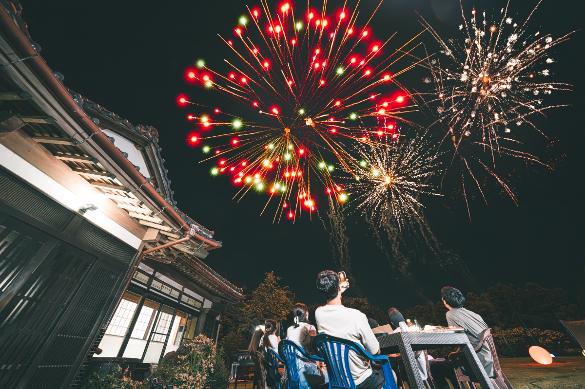 夜はグリルを囲んでBBQ、満天の星空とともに50mのプライベート花火。