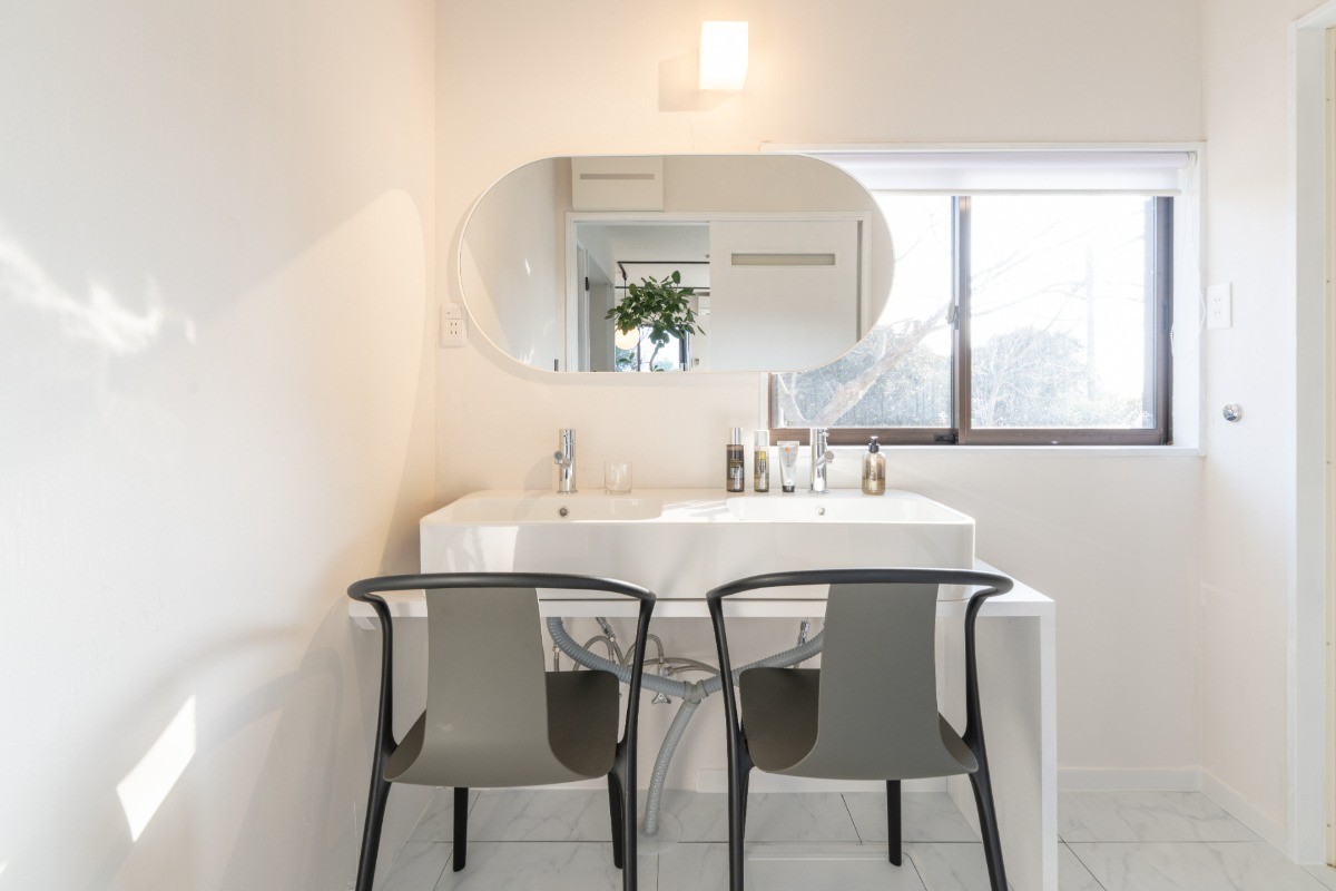 室内は、白を基調にしたミニマルで伸びやかな空間構成。部屋に差し込む自然光が、時間帯ごとに表情を変え、何もせずに過ごすことさえ贅沢に感じさせます。