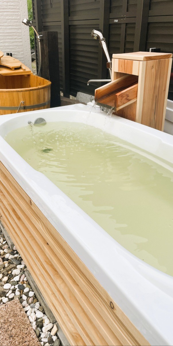 サウナの後は、こだわりの木製水風呂へ。さらに、贅沢な源泉かけ流しの露天風呂も完備。温冷交代浴を繰り返すことで、心身がゆっくりと再起動していくのを感じられるはずです。