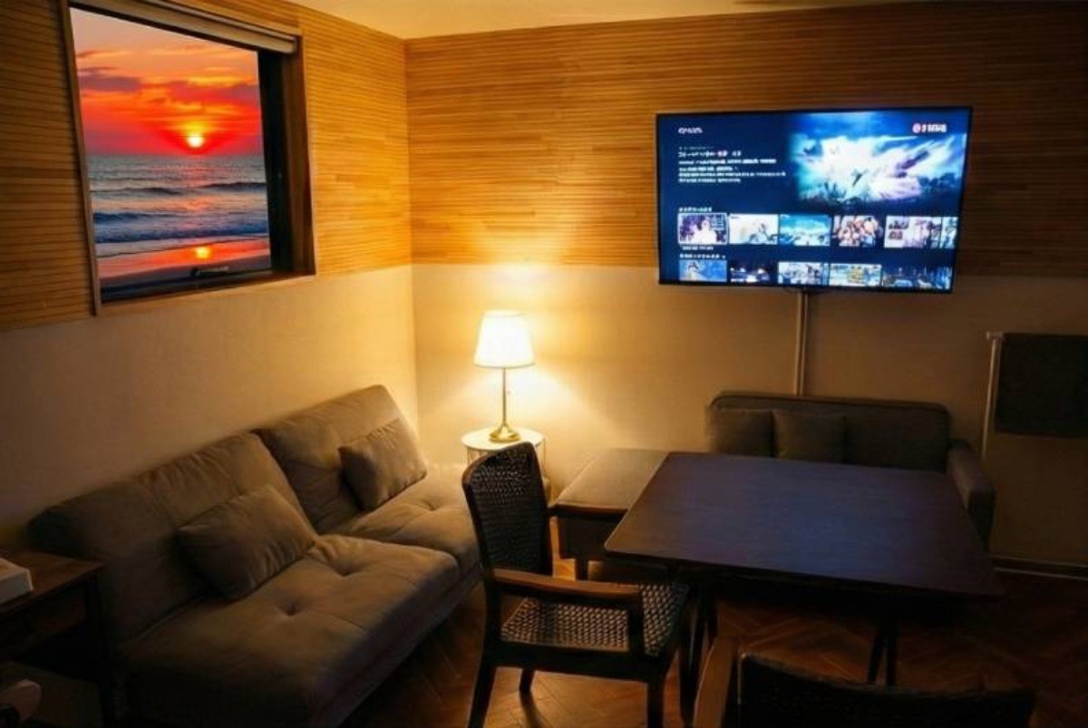 リビング wifi スマートTV 完備 アレクサ対応スピーカー(サウナ内にも設置)
