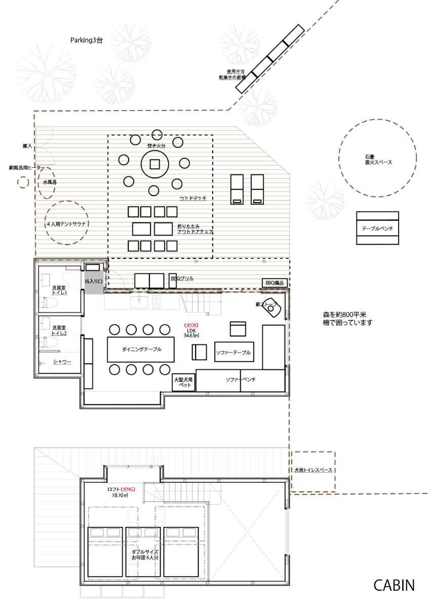 2000坪の森とキャビン、焚き火、テントサウナ、薪風呂。