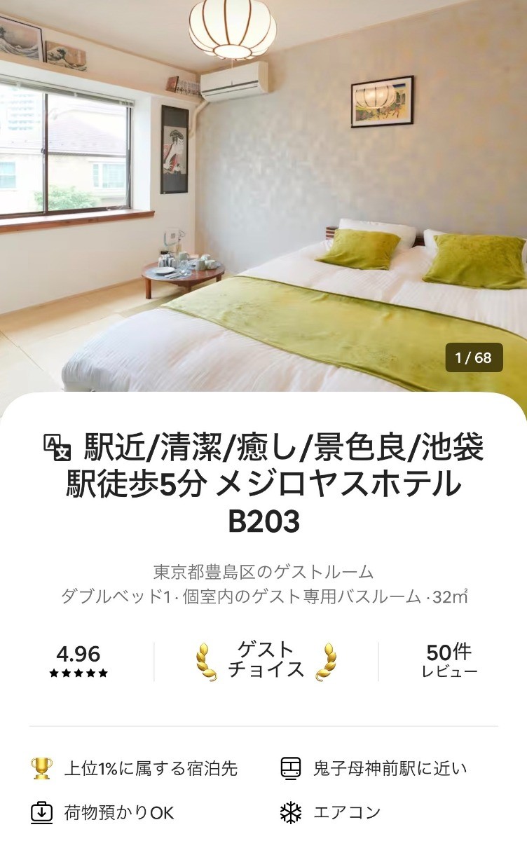 It is very conveniently located to go anywhere in Tokyo.The location where the inn is located is very quiet and safe, even though you can walk to the big train station.