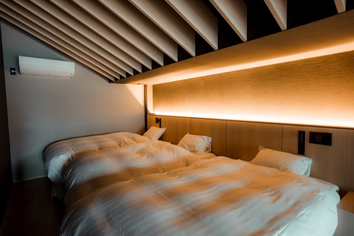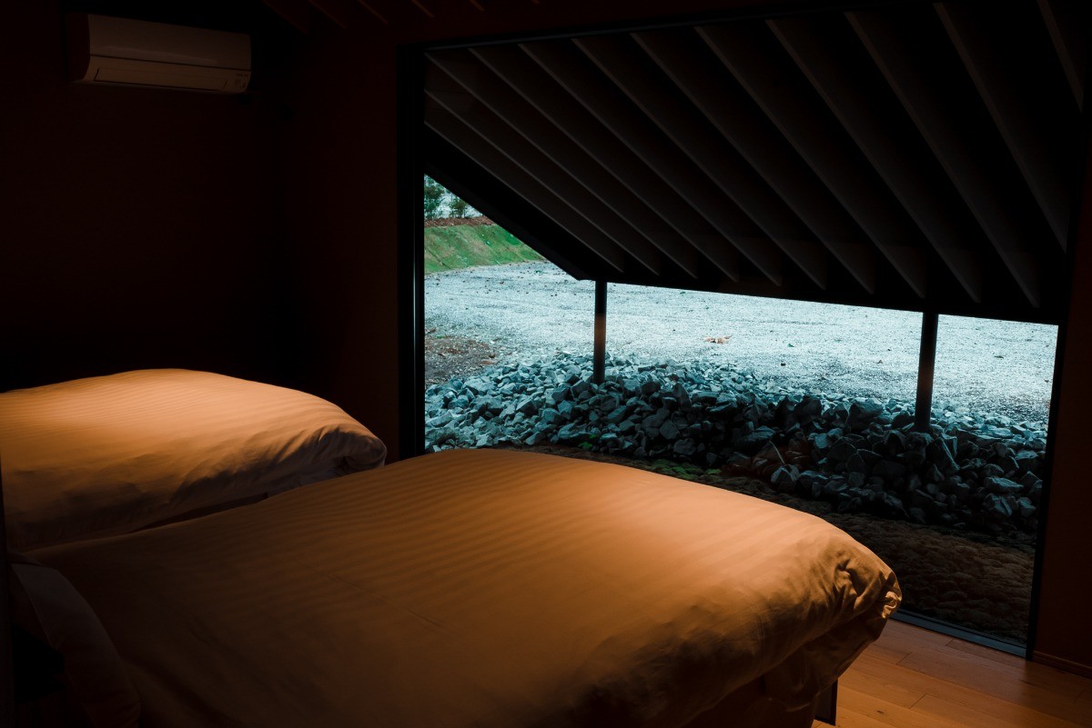 Mt.2は、Mt.1で培われた自然との調和や建築美、折紙の精神を受け継ぎつつ、より親しみやすく手が届きやすい滞在を提供する棟で、最大6名まで宿泊可能です。精緻なデザインや歴史・文化の層を感じられる空間はそのままに、若い方や初めて訪れる方でも気軽に楽しめる設計になっています。大きな窓から自然を借景として取り込み、静かな時間を過ごす体験はMt.1と共通しながらも、よりフレンドリーで開かれた印象を与えます。