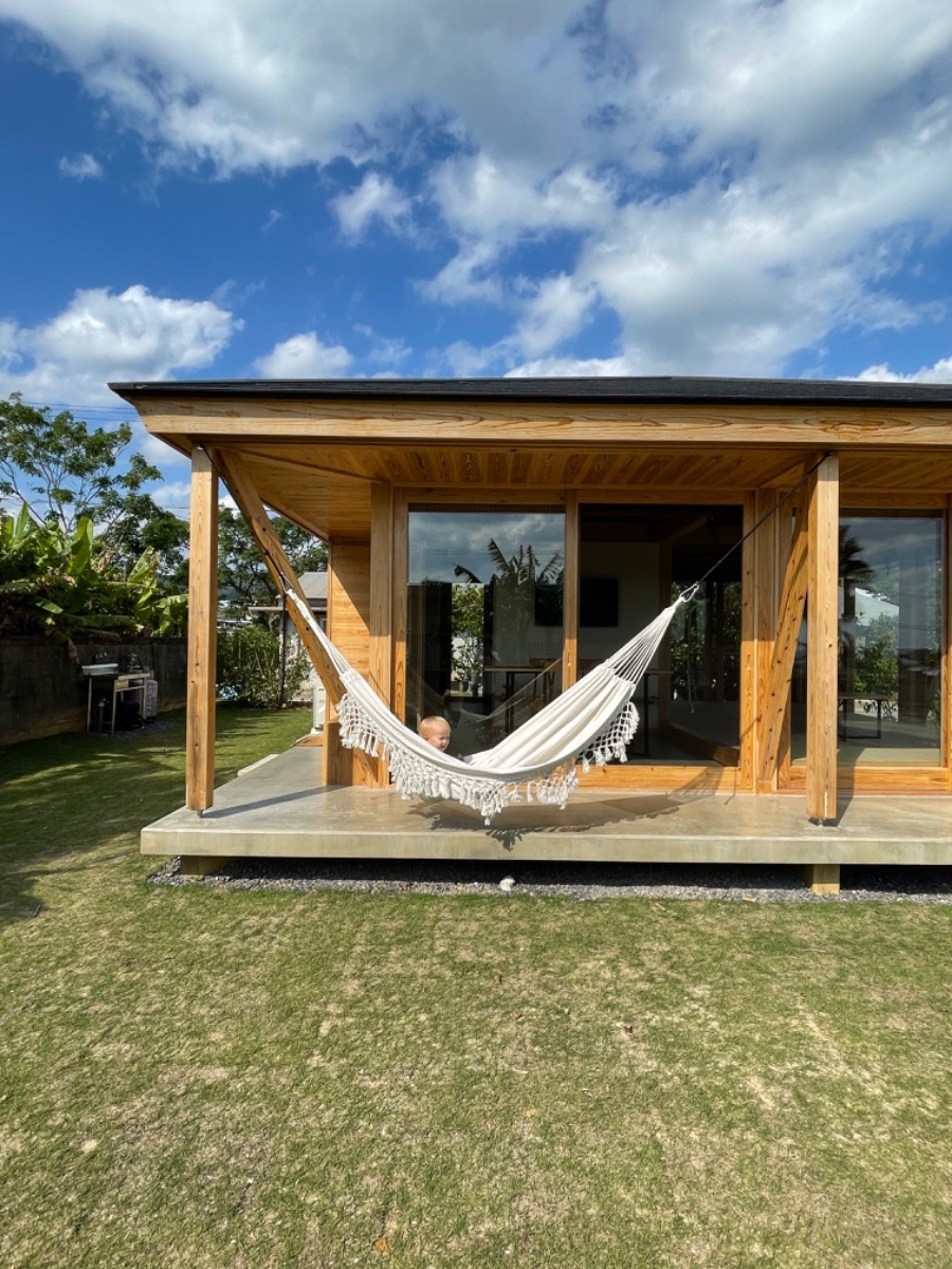 Just a two-minute walk from the Nakama River rent out this wooden that single-story designer villa with a garden for your exclusive use! It can accommodate up to four guests.
