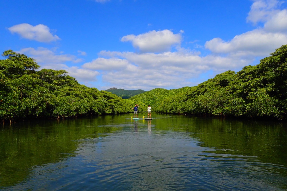 Iriomote Island, a designated World Heritage Site, is home to untouched mangroves. Surrounded by some of Japan's largest mangroves, the calm waters make this an ideal environment for SUP beginners and children.