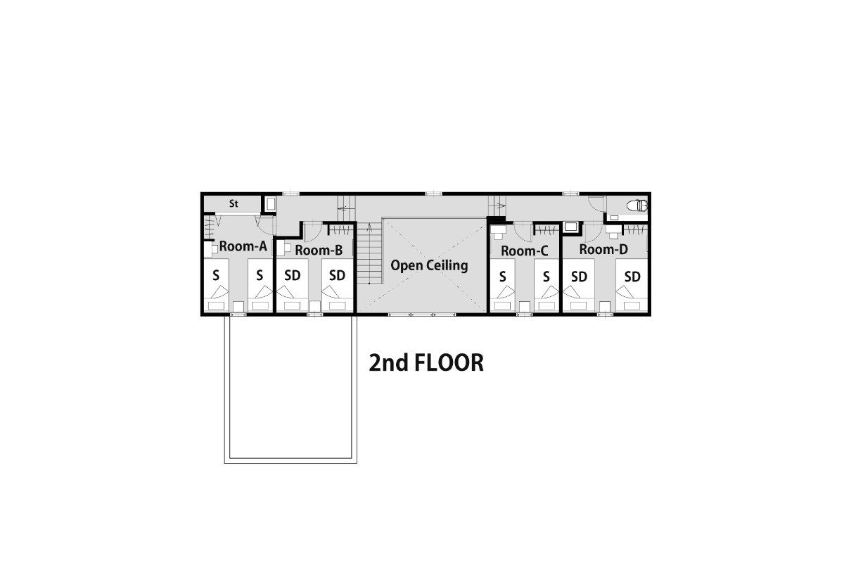 各寝室には合計シングルベッド4台、セミダブルベッド4台を備え、最大12名まで快適にお休みいただけます。