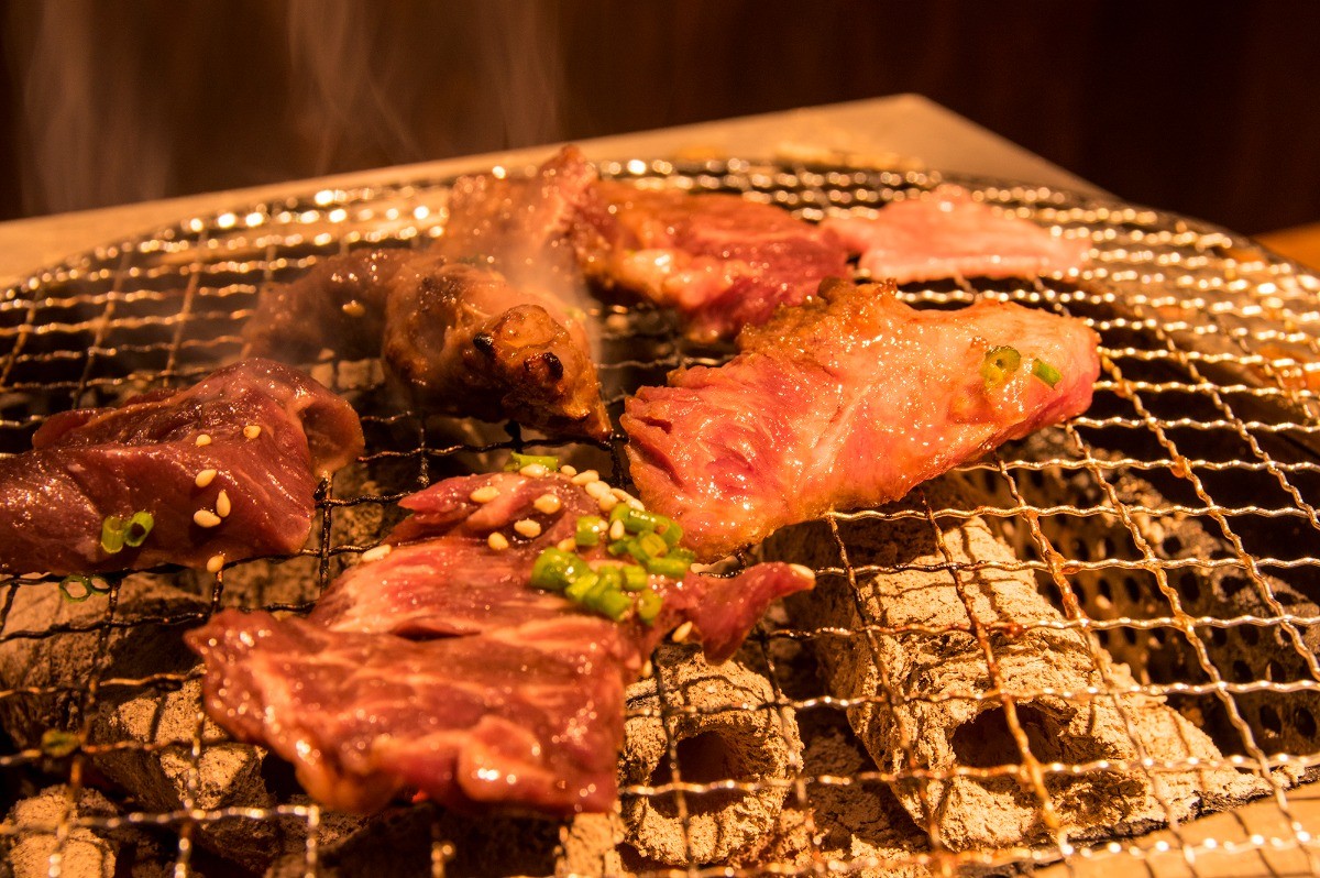 炭の赤い火がパチパチと音を立て、肉の脂が落ちて上がる香ばしい煙。