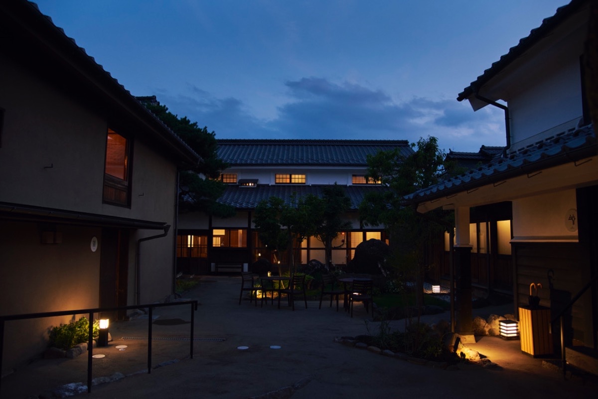 TRAVEL STOP うんのわは、かつての主屋・蔵・納屋・蚕室の4つの棟から成っており、その中心に中庭が広がっています。