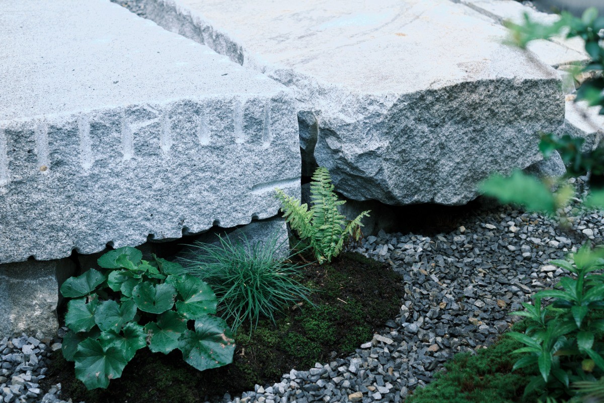 地元の職人やクリエイターに依頼した御影石のベンチ柴田酒造場は1830年創業。庄屋を営む柴田家が余剰米を用いて酒造りを始め、195年もの間この地で日本酒をつくり続けてきました。