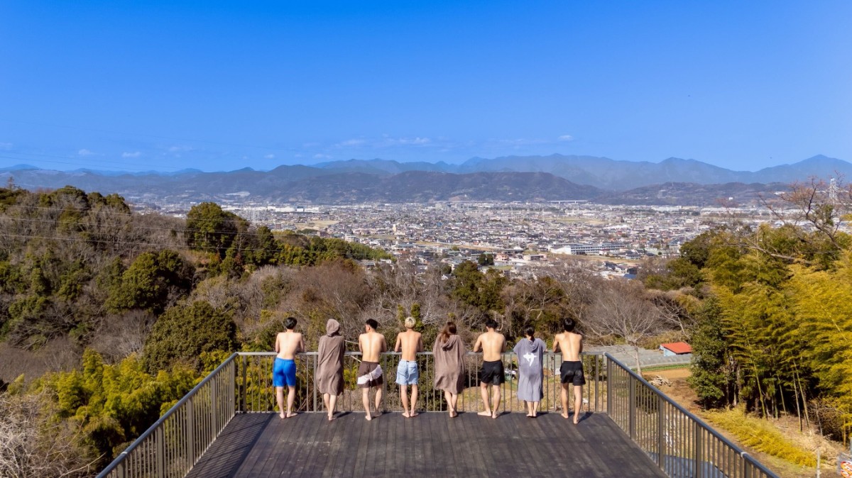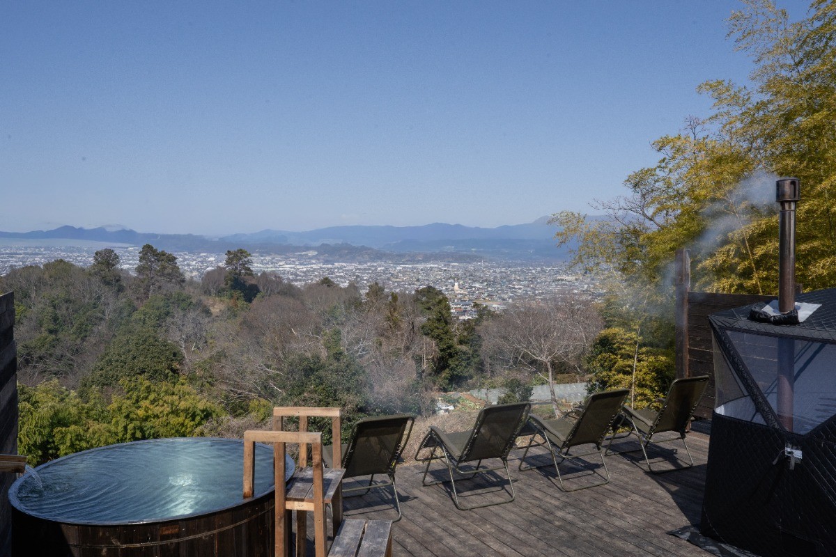 サバンナ箱根は、都心から約60分の箱根・小田原の高台に生まれた、完全予約制のプライベートテントサウナです。空が近く、風が抜け、夜には小田原の街明かりが広がる展望デッキで、薪の炎と自然の音に包まれる時間を届けます。