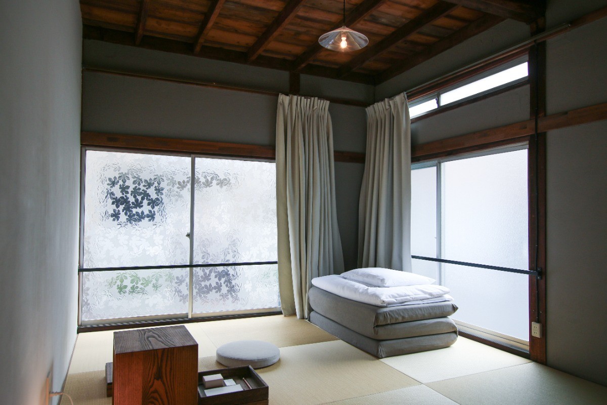 This room has beautiful Yatsude (Fatsia japonica)-glazed glass.