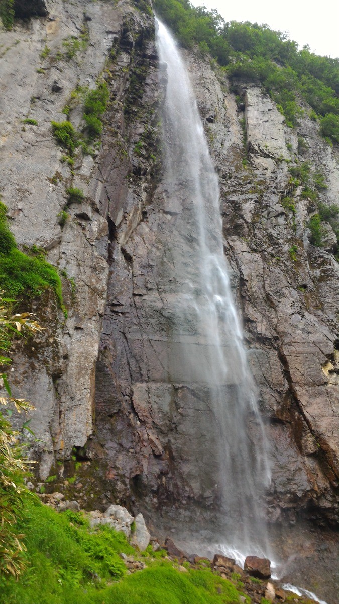 Standing beneath the powerful mountain waterfall, you feel the energy of nature and the ancient practice of spiritual cleansing.