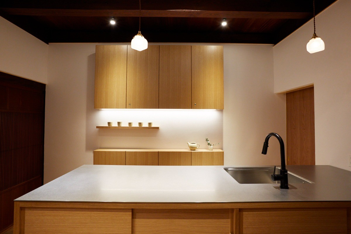 Passing through the noren, you enter the kitchen and living–dining area.
