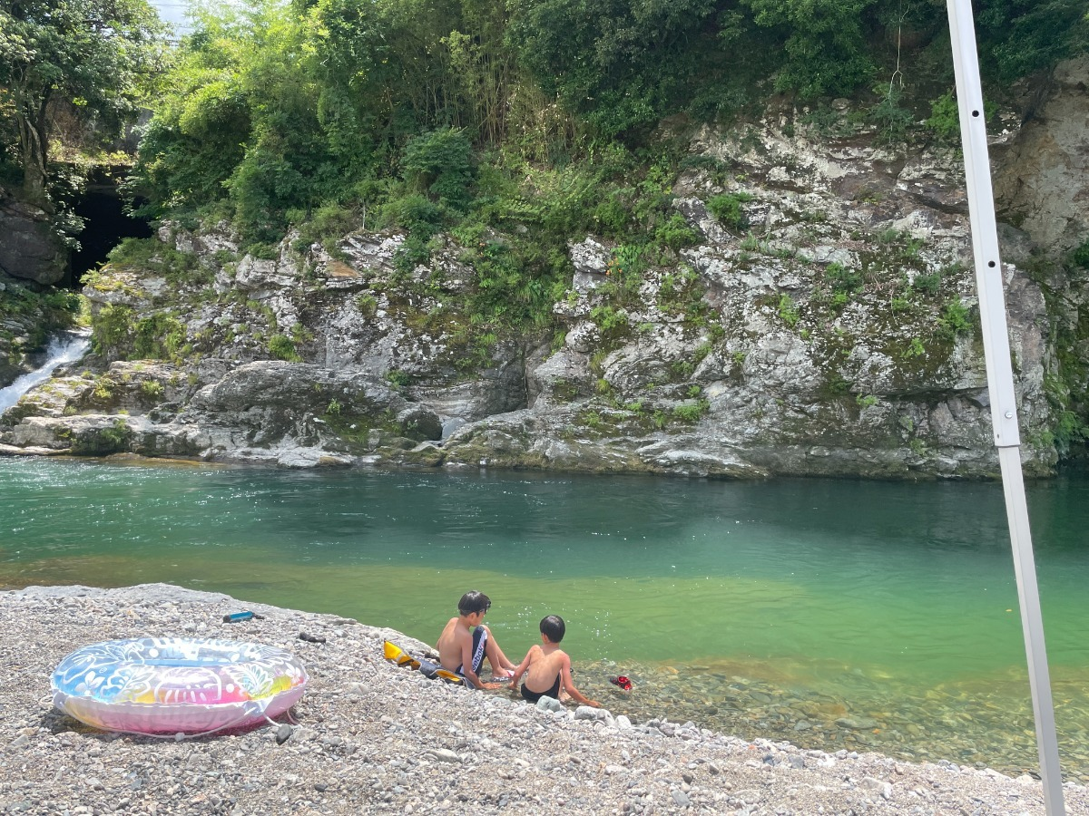 During summer vacation, Miyataki bustles with visitors enjoying the river.