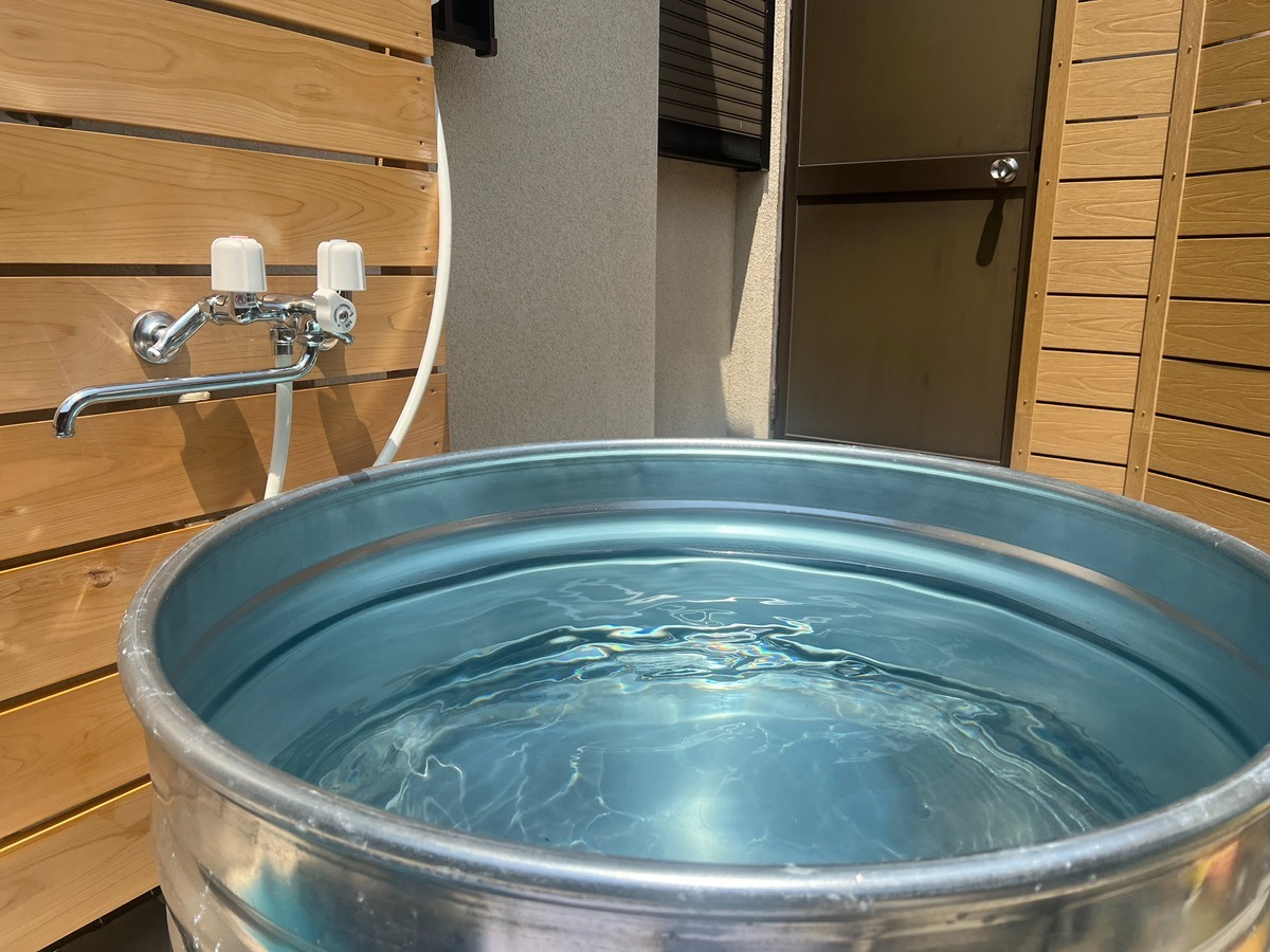 The courtyard also features a bath tub, which can be used either as a cold plunge after the sauna or as an open-air bath.