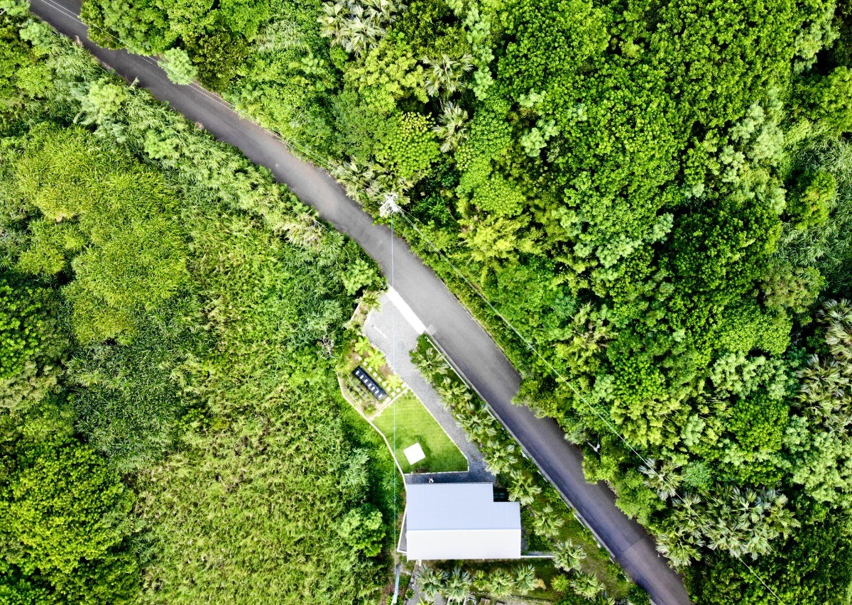 Just a 14-minute drive from Amami Airport, "tsukimiru_ie (House that sees the moon )" is a newly built private retreat nestled at the narrowest point of Amami Ōshima. Surrounded by hills and away from the bustle of village life, the home’s warm cedarwood façade pays quiet tribute to the island’s traditional architecture.