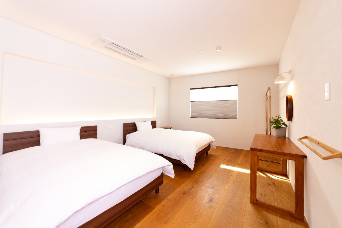 There are no age restrictions for guests staying at the inn. The inn faces the sea, and there are no fences or safety facilities. We ask that parents always accompany children when they are at the beach and keep an eye on them. Unlike a typical hotel, the inn has stairs, furniture with sharp edges, and the bathroom has large glass windows. There is also a knife hidden in the door under the kitchen sink. There are no particularly sharp or dangerous items, but there is a possibility of injury to children depending on their age, height, and behavior, so please be careful.