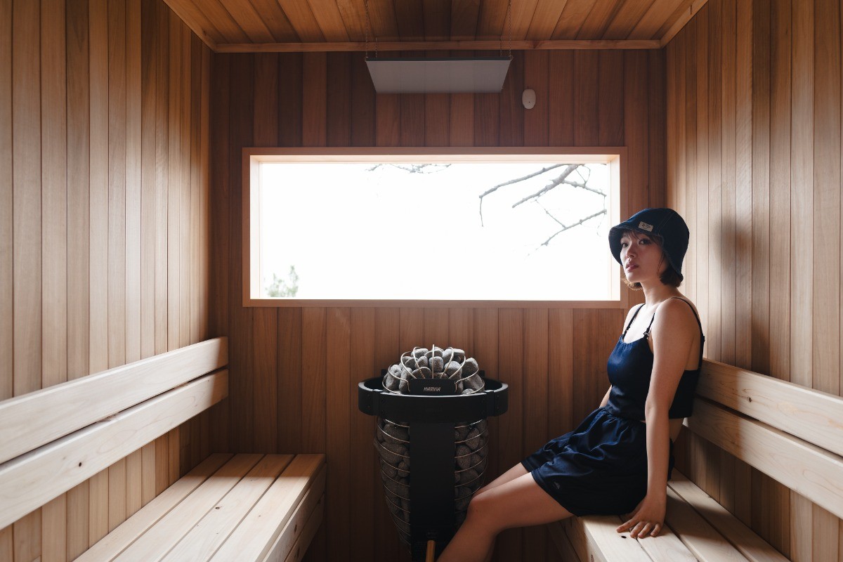 サウナ室からは瀬戸大橋をまるで絵のように眺めることができ、“ロウリュの魂”と名付けられた「HARVIA」最新モデルのストーブがしっかりと身体を温めてくれます。
