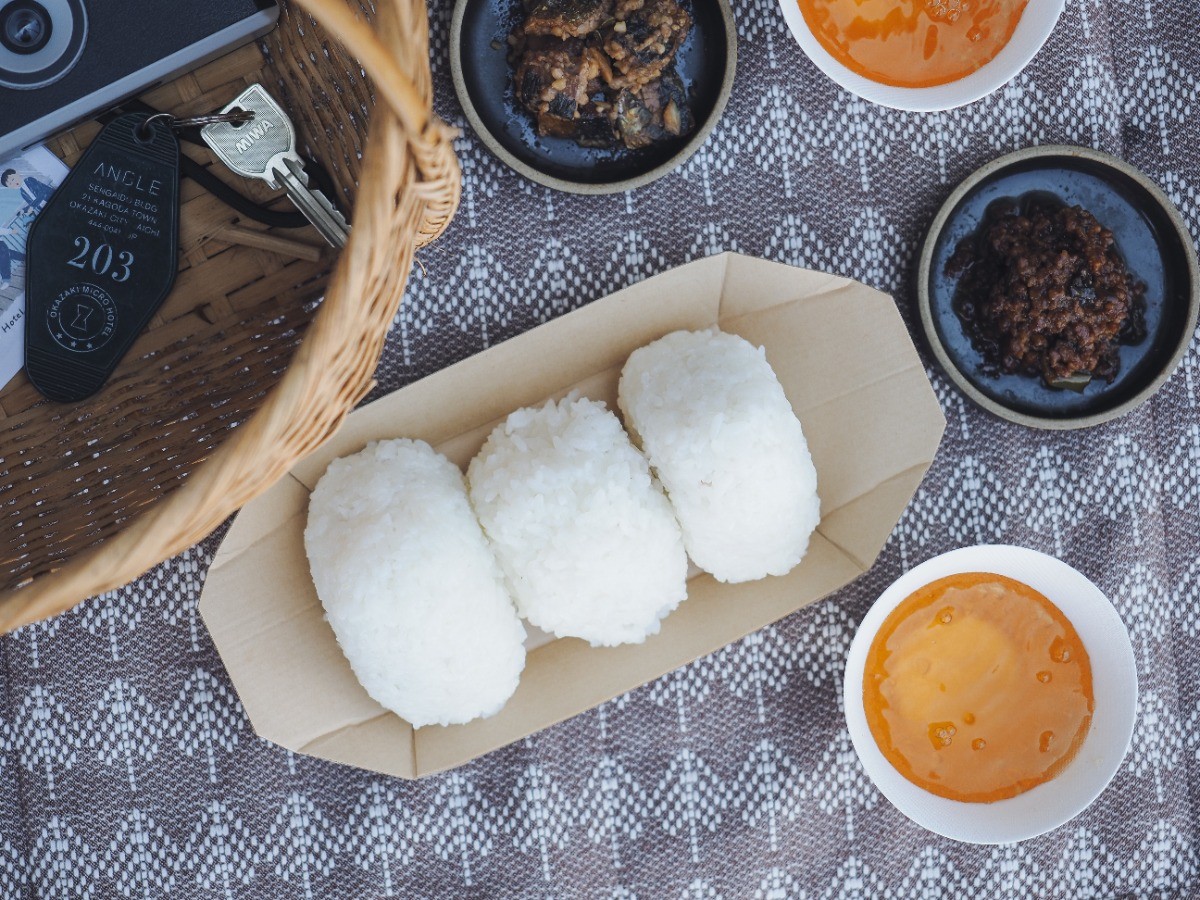 おにぎりの具材は、「八丁味噌」をはじめ岡崎の食材を使用したアングルオリジナル具材をご用意します。(時期により変動する場合がございます。)
