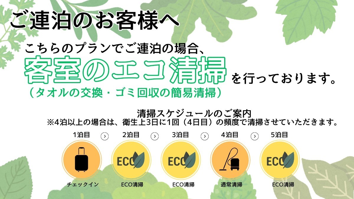 ※4泊以上の場合は、衛生上3日に1回(4日目)の頻度で清掃させていただきます。