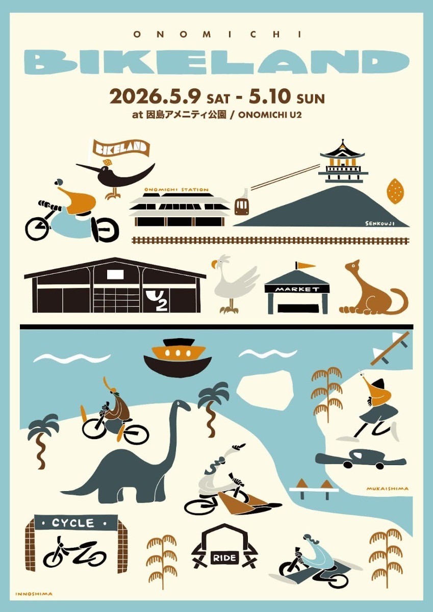 自転車の運動会&文化祭として人気を博してきたバイクランド。昨年に続き、今年もONOMICHI U2と因島アメニティパークで開催されます。しまなみ海道だけではない、地域の魅力を存分に楽しみながら、自転車やアウトドアで遊ぶ二日間。ぜひ一緒に楽しみましょう!